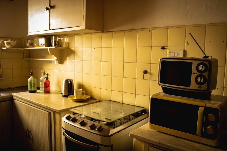 Additional features may include a child safety lock, kitchen timer, and defrost function. Explore the ‘Control Panel Explained’ section to understand how to access and utilize each feature effectively. These features combine to deliver a versatile and user-friendly microwave experience.